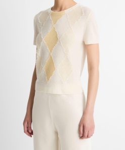 Vince Women’s Hand-cut Argyle Wool-blend Short-sleeve Sweater | Crema & Palazzo & Buttermilk