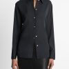 Effortlessly polished, this sleeveless crepe button-up tapers in at the waist for a slim fit.
