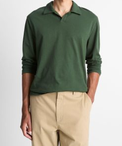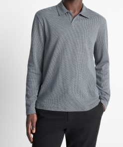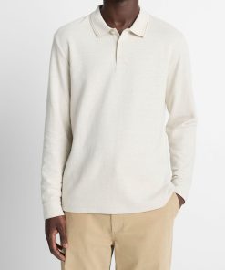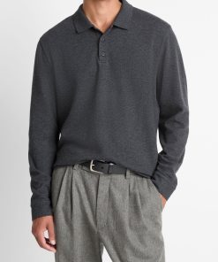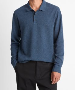 Vince Men’s Heathered Double-face Cotton-blend Polo Shirt | Heather Coastal Blue & Heather Fog
