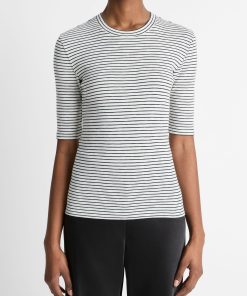 Vince Women’s Textured Micro-stripe Italian Cotton-blend Sweater Tank | Oat Shell & Brick Rose