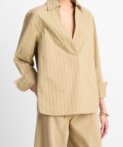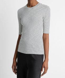 Vince Women’s Textured Micro-stripe Italian Cotton-blend Sweater Tank | Oat Shell & Brick Rose