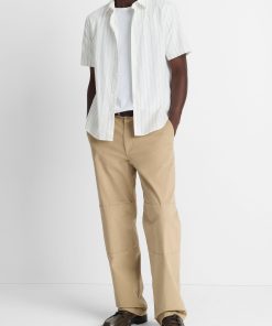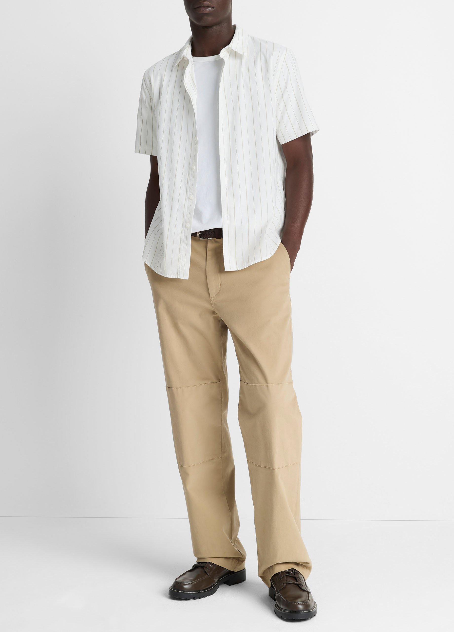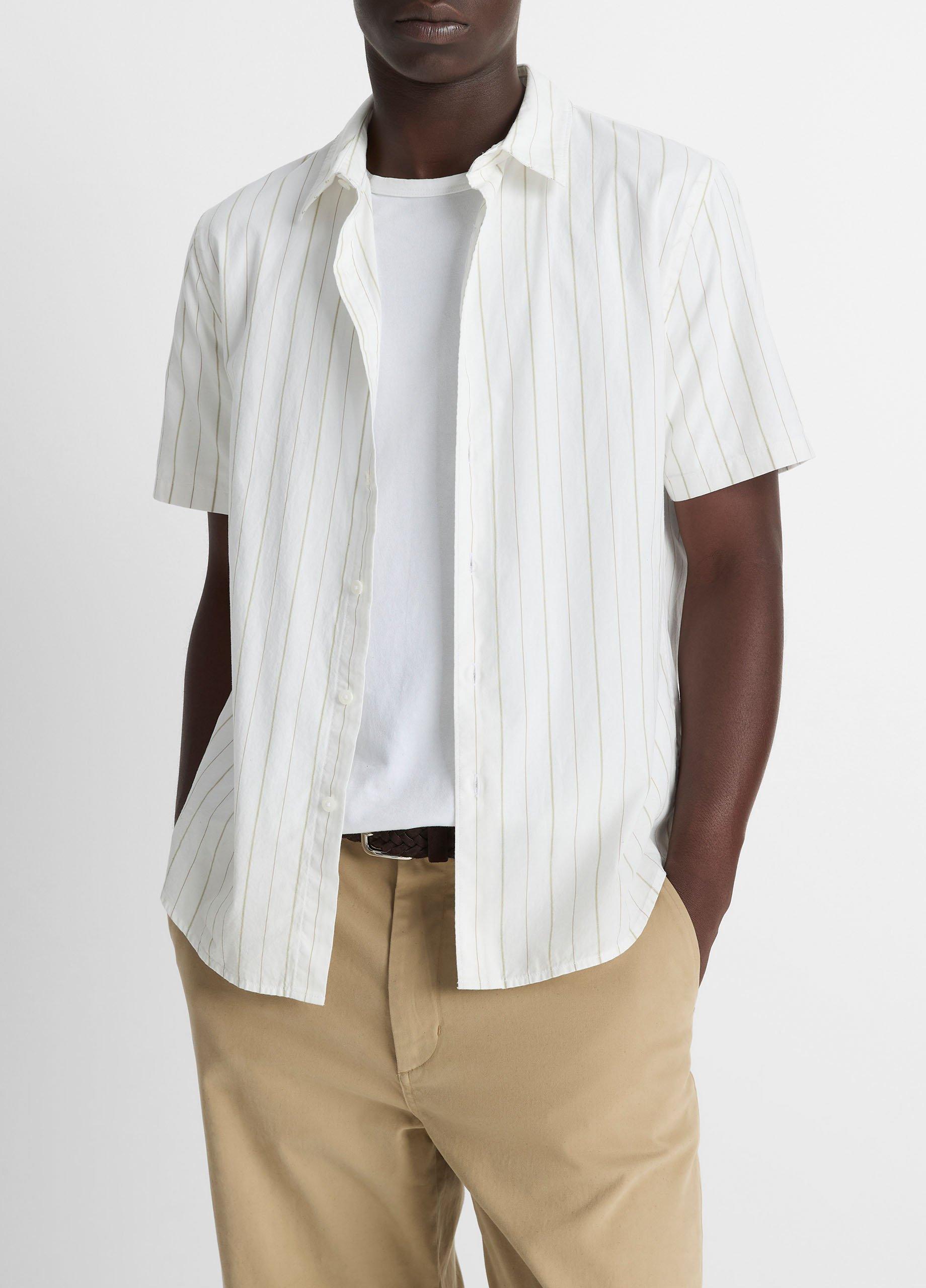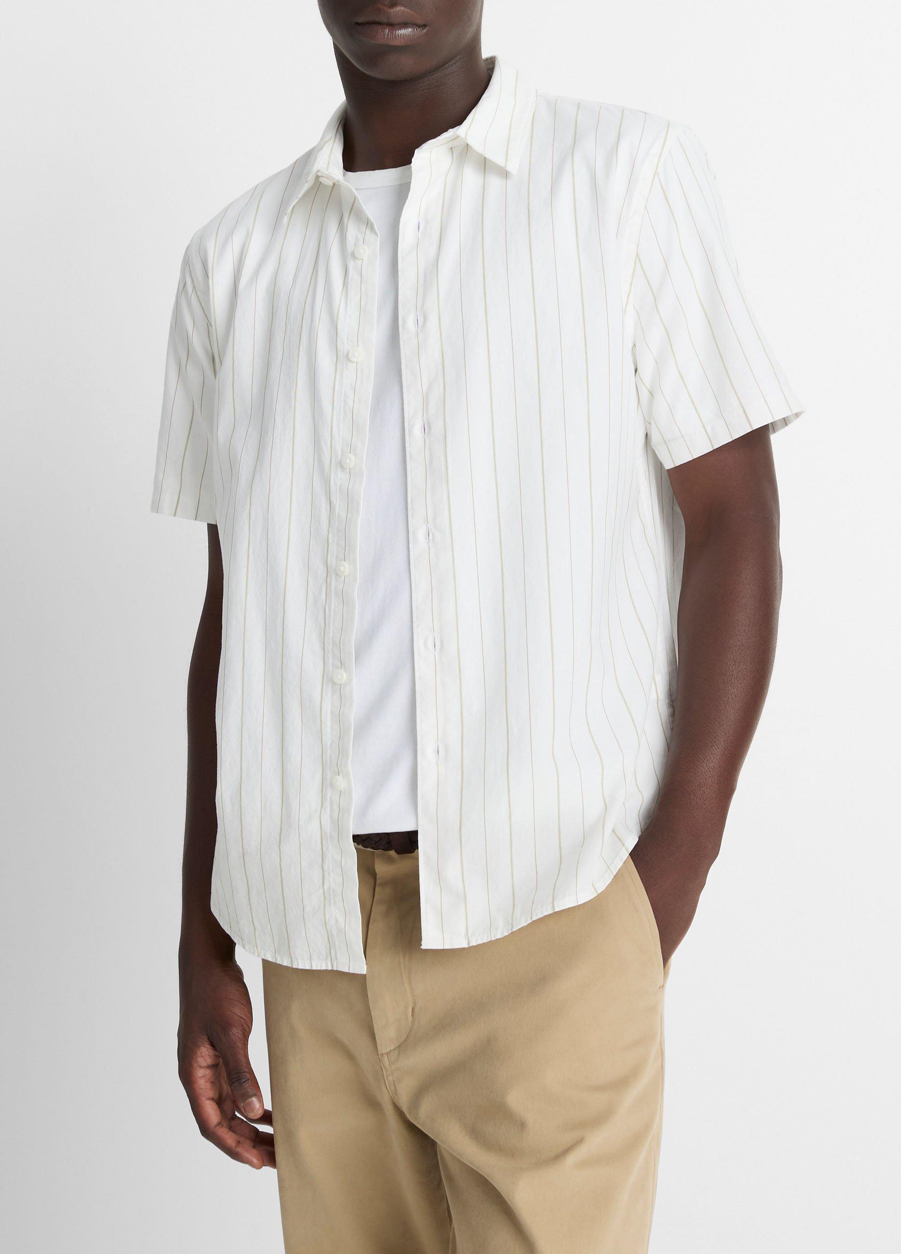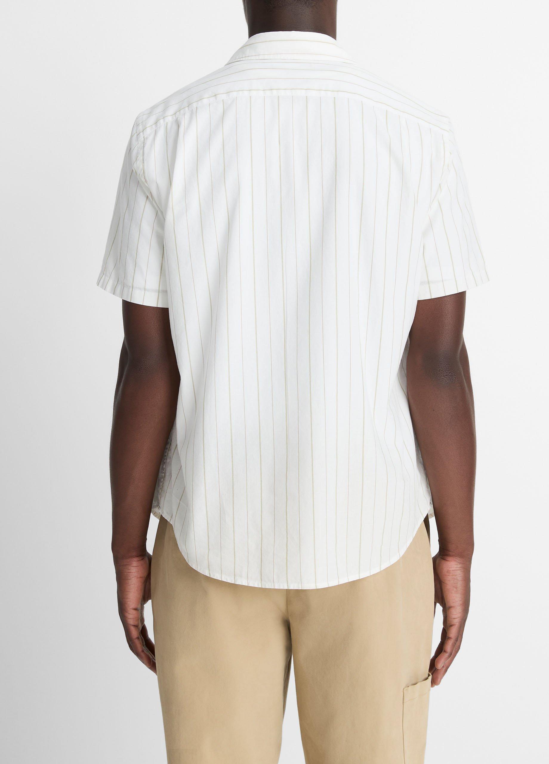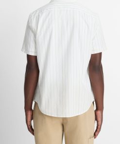 Vince Men’s Chatsworth Stripe Cotton Short-sleeve Button-front Shirt | Natural Combo