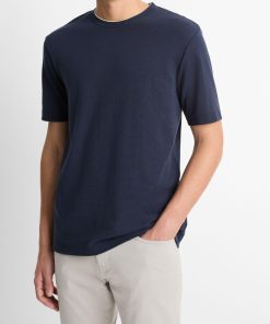 Vince Men’s Double-neck Pima Cotton T-shirt | Coastal Blue & Light Sand