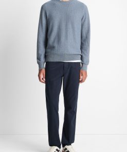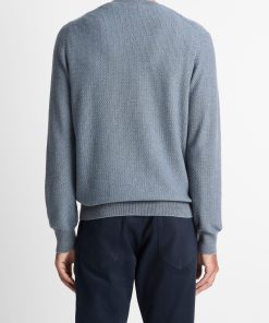 Vince Men’s Geo-jacquard Wool-blend Crew Neck Sweater | Parlor Blue & Medium Heather Grey