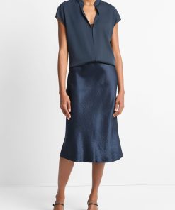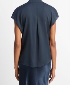 We’ve reimagined our best-selling cap-sleeve blouse with a contrasting hidden placket for a clean finish. It’s still crafted from our signature stretch-silk satin for a soft, barely-there feel on the skin.