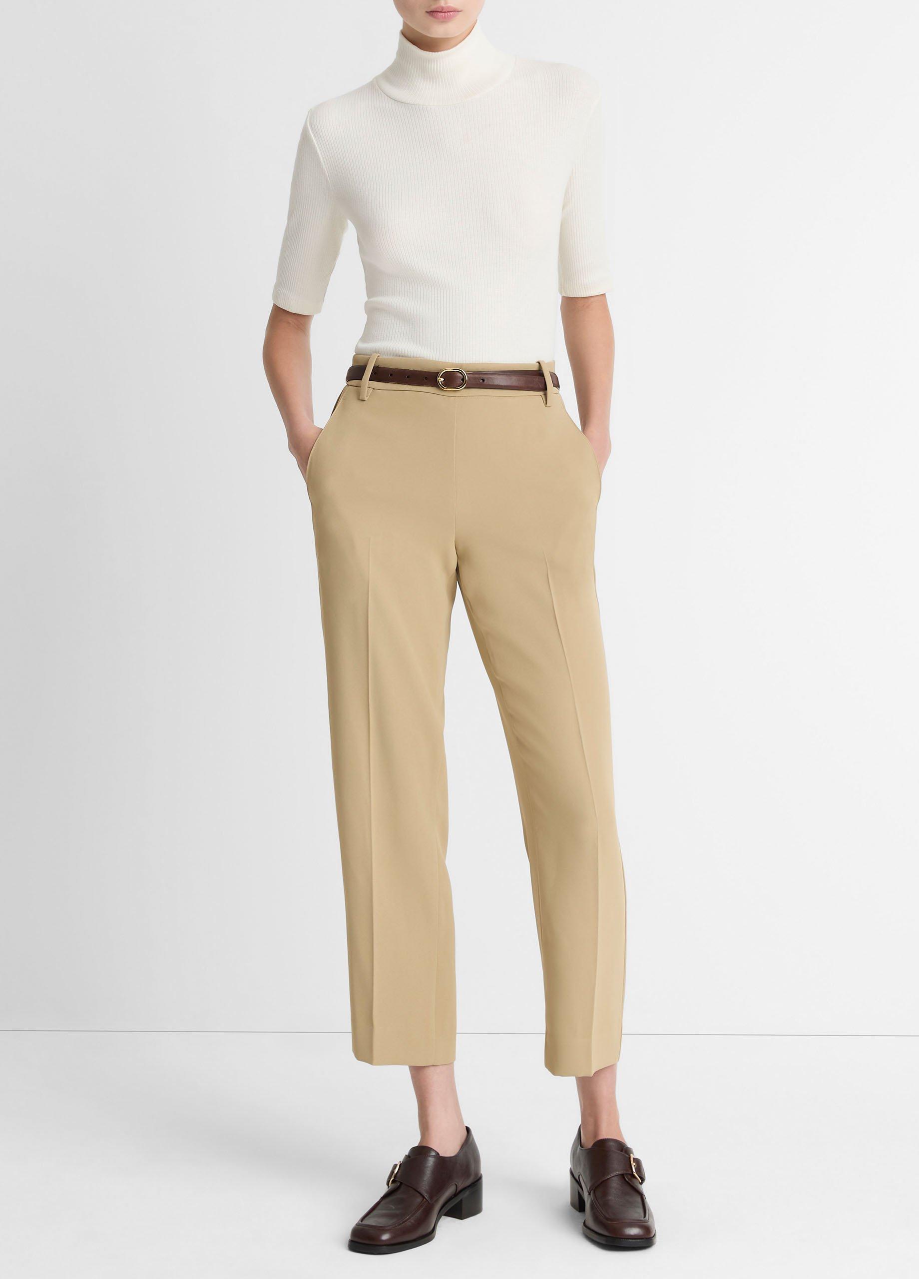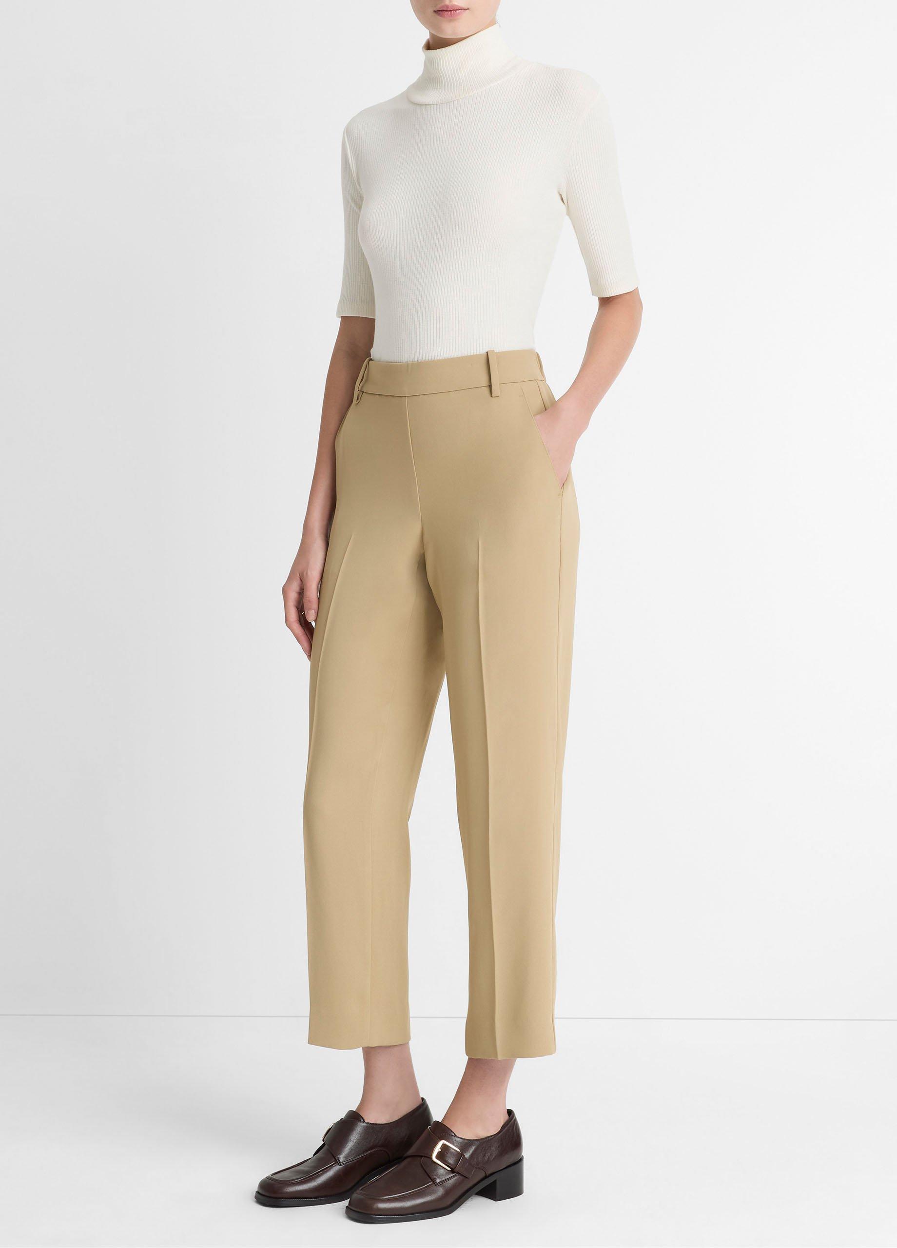 With the appearance of a trouser and discreet comfort from an elasticized back waist, this crepe pull-on pant will readily take on the lion’s share of the work in your wardrobe. It’s tailored with a versatile, straight cropped silhouette that tapers slightly below the knee.