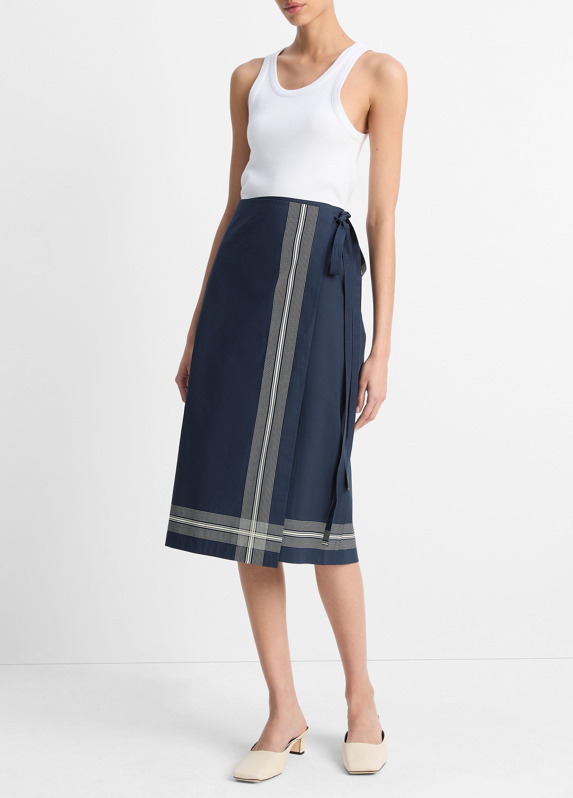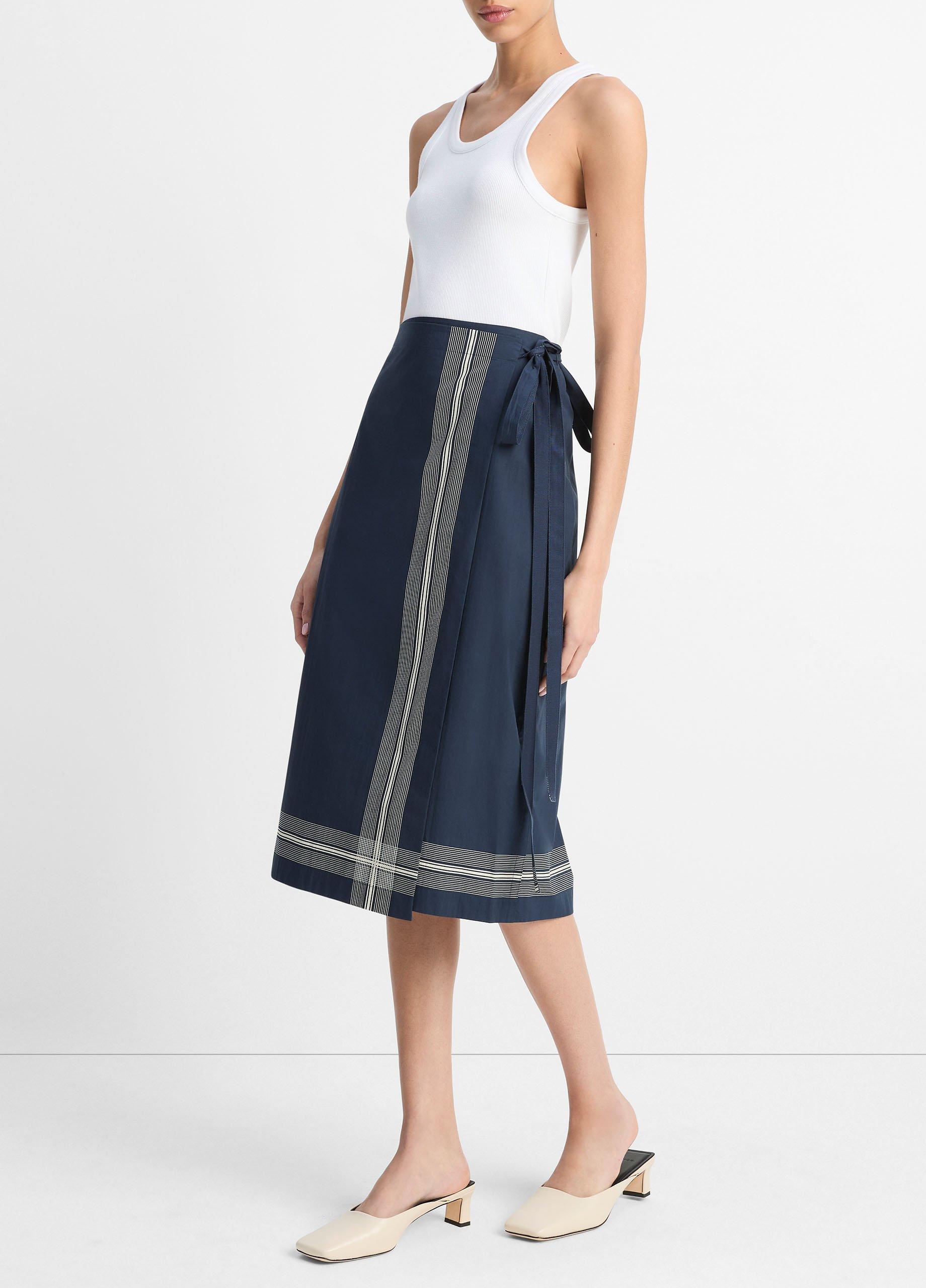 Chancing upon family photos from the ’50s, our creative director was inspired by the fresh, optimistic picnic sets and silhouettes throughout each image. This led us to the overlapping handkerchief stripe you’ll spy throughout our collection, including here on our wrap skirt. We’ve crafted it from crisp cotton poplin for a light, breathable feel on hot days.