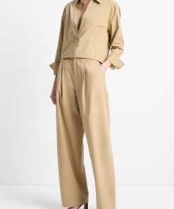 Vince Women’s Italian Cotton Pleated Trouser | Fawn