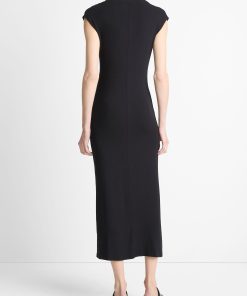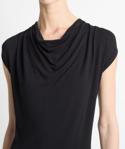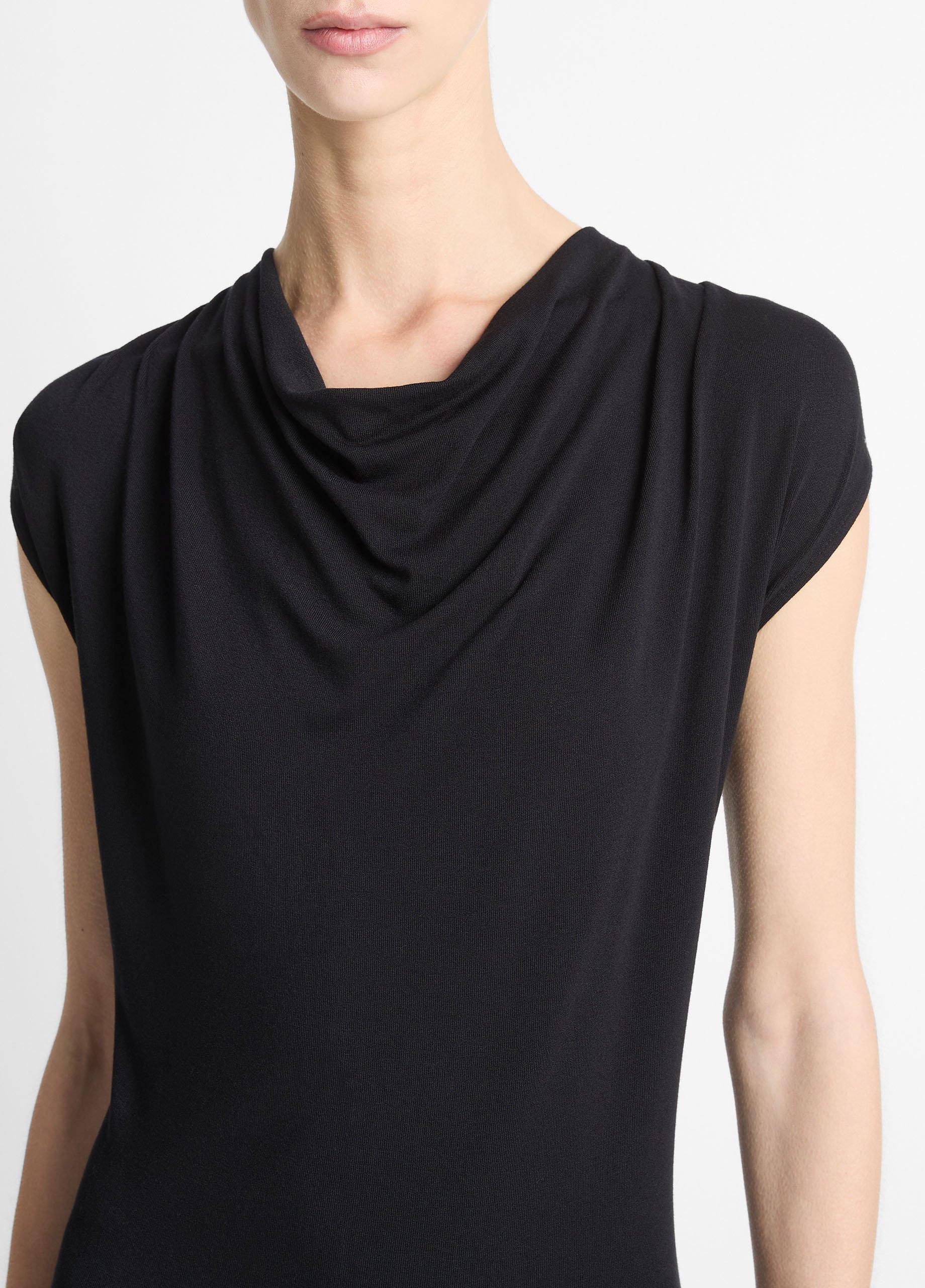 Our midi dress is defined by a softly draped cowl neck and column silhouette, cut to gently skim the form just right; not too tight, not too loose. It’s made from a sumptuous stretch-jersey that feels as soft as a sweater on the skin.