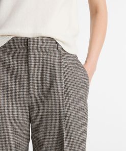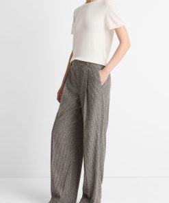 Vince Women’s Plaid Wool-blend High-waist Trouser | Cacao Houndstooth