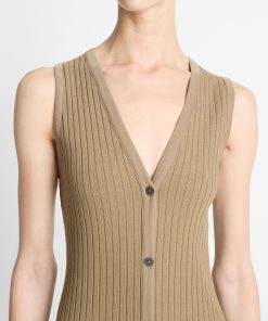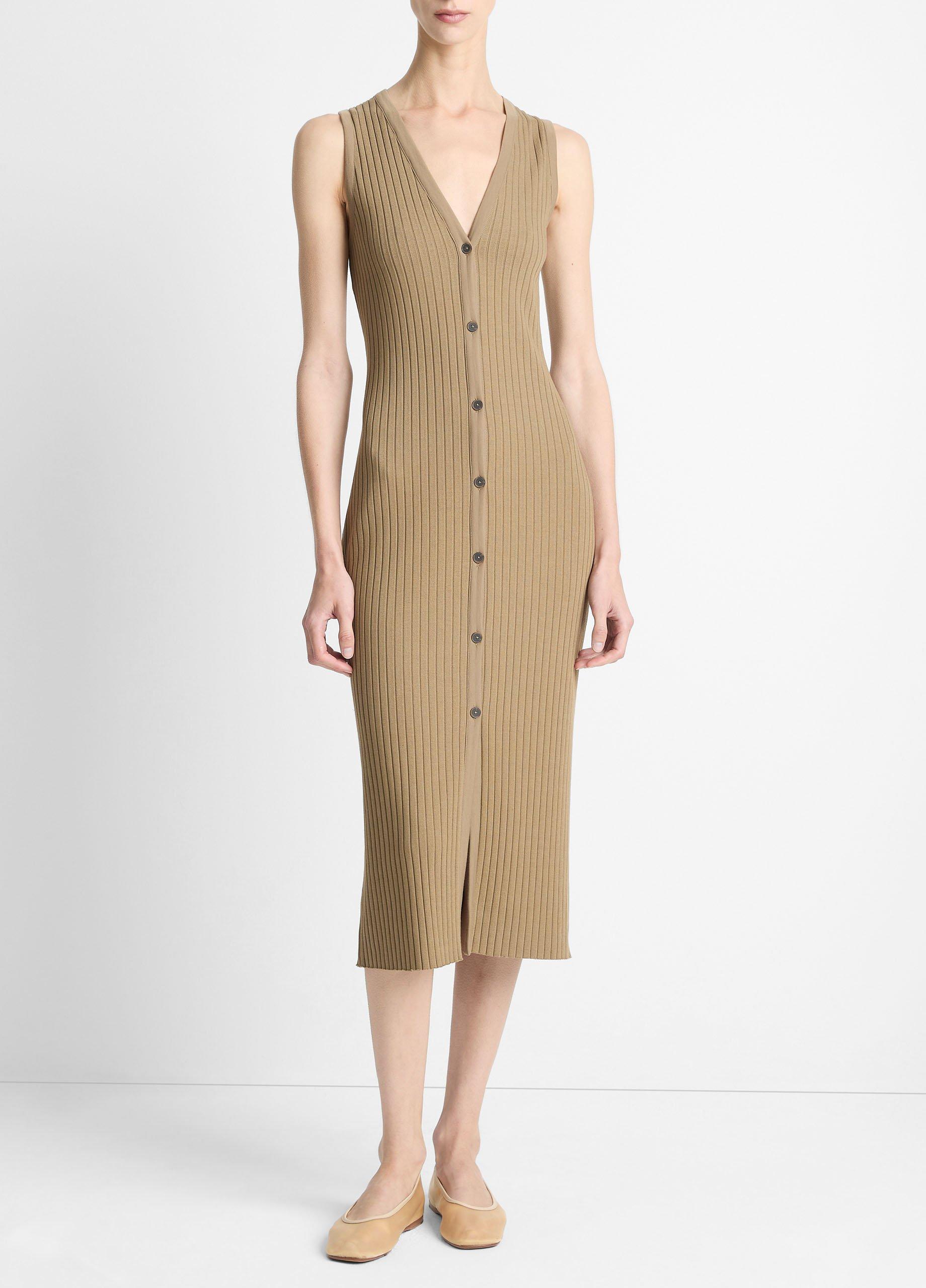 Chunky ribbing adds dimension and depth with a soft feel to our cotton-blend dress. A button placket down the center lends this versatile silhouette its dash of definition.