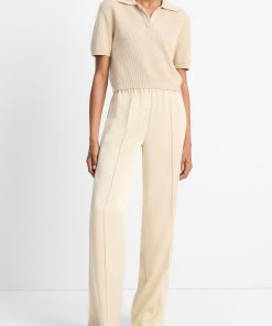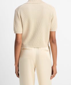 A blend of silk and cotton achieves the perfect balance of soft structure and fluid drape in our rib-knit polo sweater. It’s shaped with a slightly cropped, boxy silhouette ideal for pairing with denim and trousers.