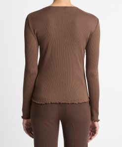 Hints of romanticism pervade our lineup this season. See the ruffled edges that define the cuffs and hem of this long-sleeve tee. It’s cut from sumptuous, ribbed Pima cotton — a fiber beloved for its incredible softness and lasting qualities.