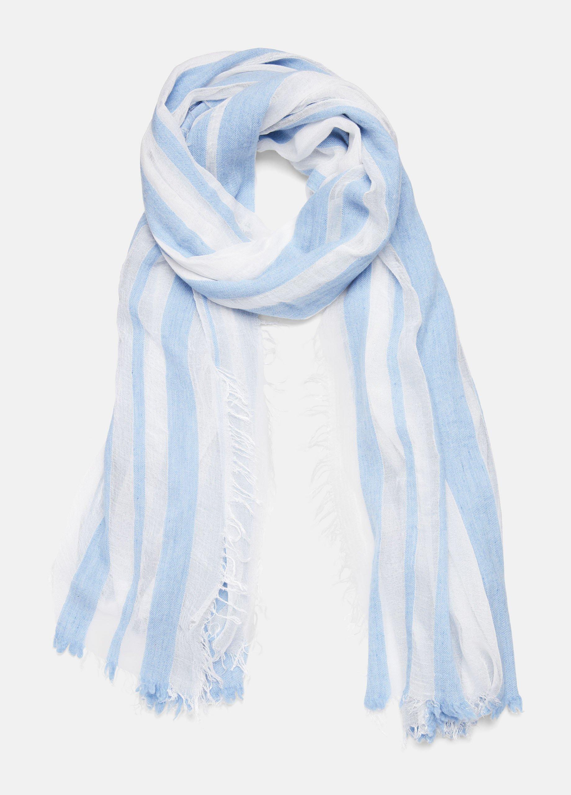 Our sheer striped scarf is woven in a wool blend for a luxurious seasonless essential.