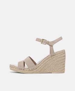 An update on the classic espadrille, our supple suede Gwen sandal is elevated with a wedge heel and squared buckle closure at the ankle.