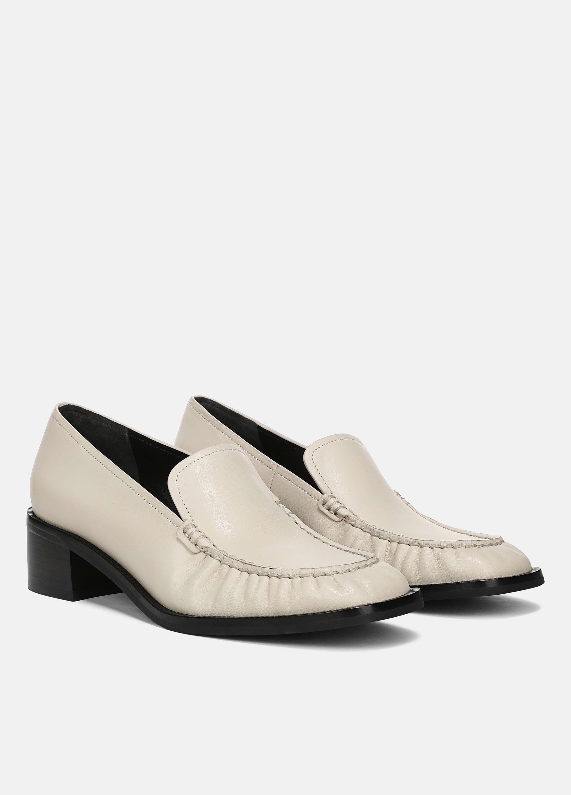 We’ve elevated the classic leather loafer with a stacked block heel. Special details distinguish it from the rest, from the artisanal hand-sewn plug to its rubber outsole for discreet traction.