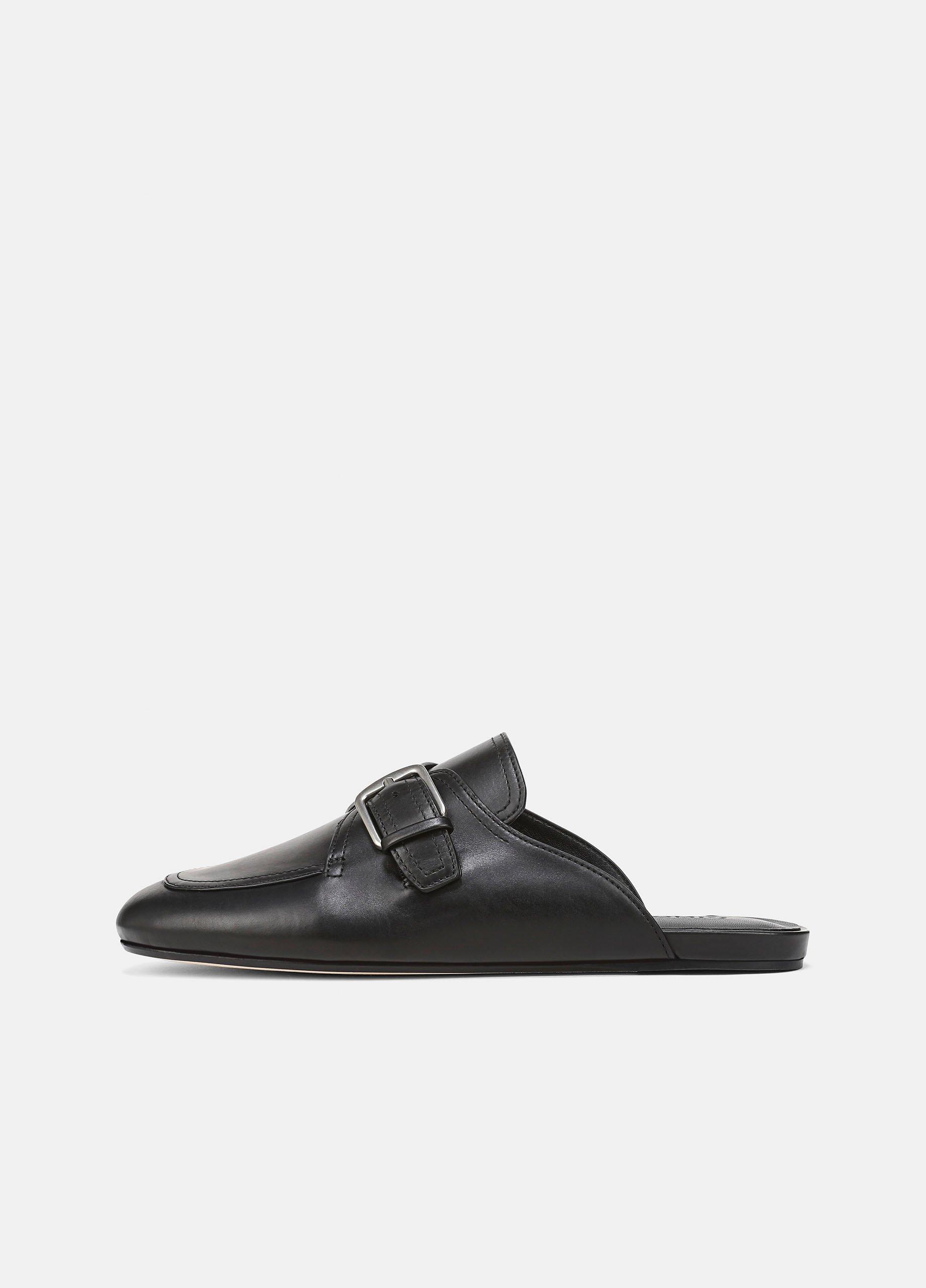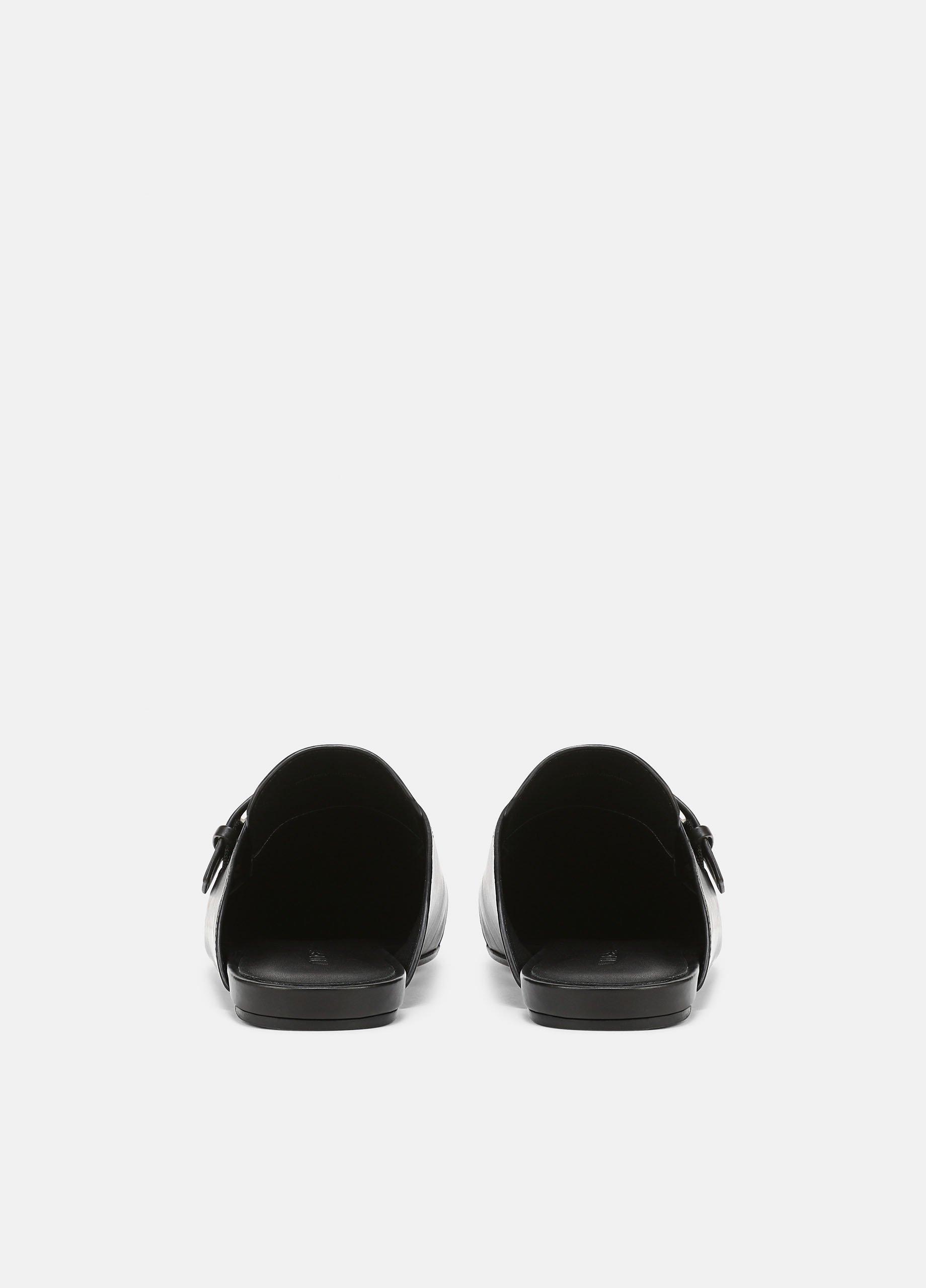 Our Minetta Loafer Mule is composed of soft leather and finished with a self-strap across the vamp that secures with a squared metal buckle.