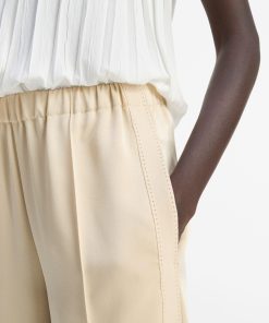 The relaxed, easy nature of our wide-leg pull-on pant is juxtaposed with a refined crepe fabric, lending it even more versatility for dressing up or down. We’ve finished this pair with a tonal knit strap down the side of each leg for a subtle touch of sport, along with an elasticized drawstring waist for comfort that promises a permanent spot in your rotation.