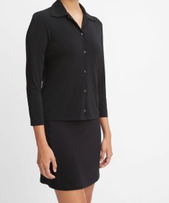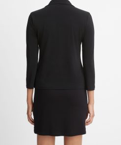 Vince Women’s Three-quarter-sleeve Button-front Polo Top | Black